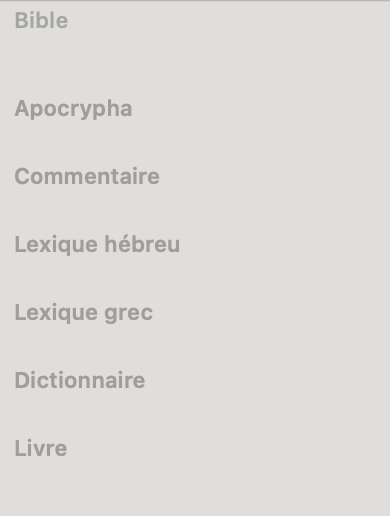 Il suffit de cliquer sur la catégorie de la Bible pour la faire apparaître.