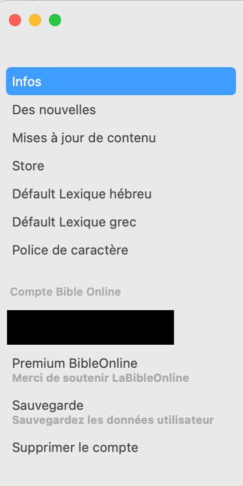 La fonction d'aide de la Bible en ligne pour Mac n'est pas très complète, mais le programme est très intuitif, de sorte que son utilisation est en grande partie explicite.