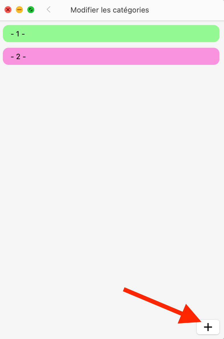 Cliquez sur le + et vous pourrez ajouter des catégories de différentes couleurs et leur donner un nom de votre choix.