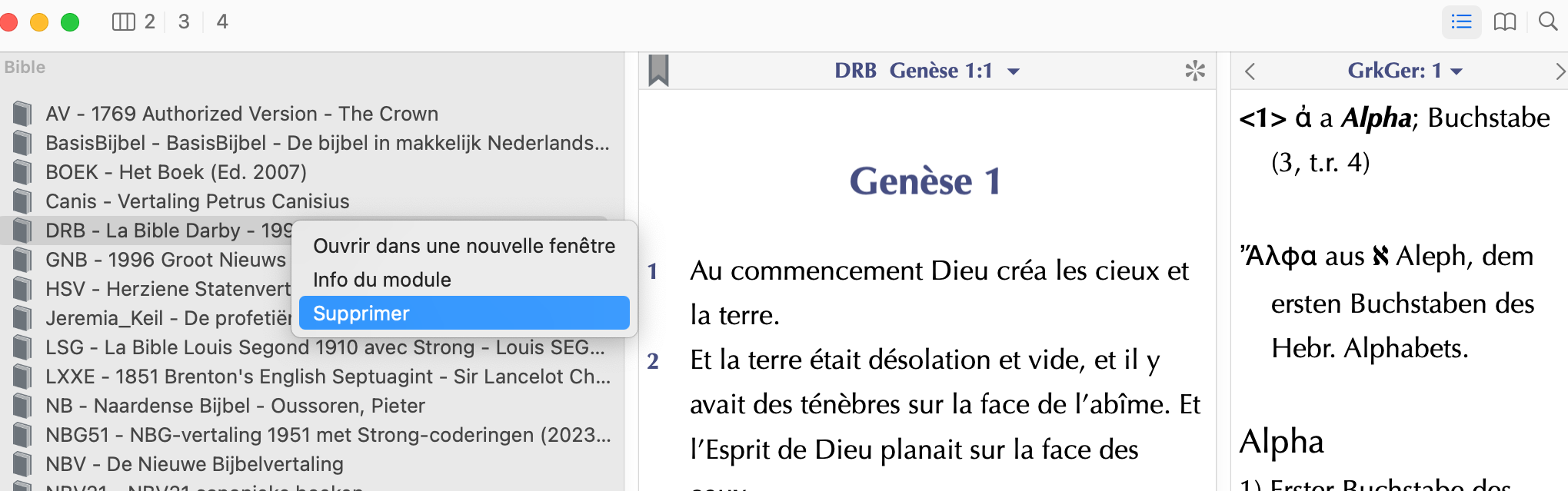 Cliquez avec le bouton droit de la souris (second clic) sur le module que vous souhaitez désinstaller et choisissez Supprimer.