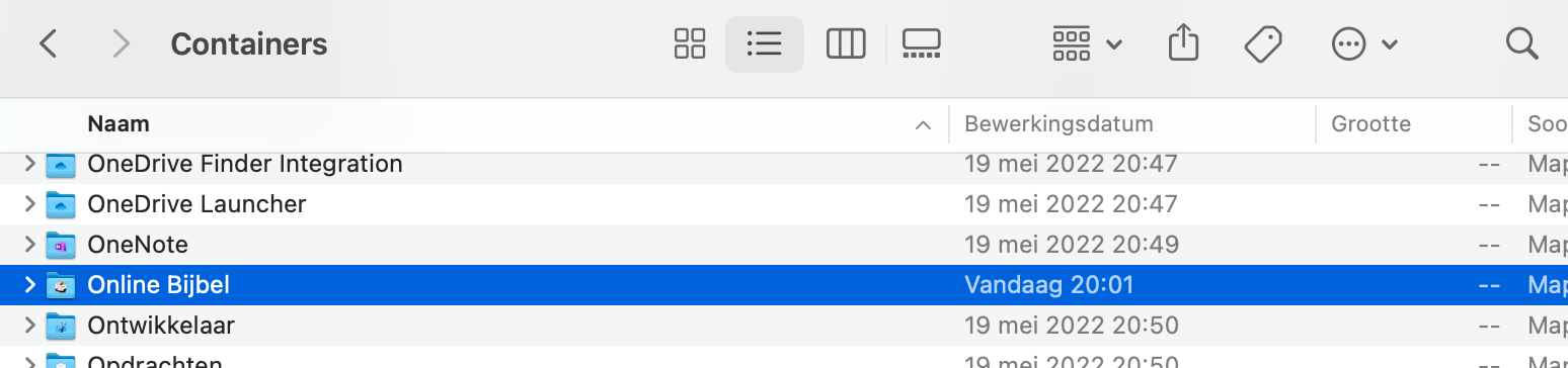 • Ouvrez le dossier « Containers » dans la Bibliothèque et supprimez le dossier « Online Bible »
