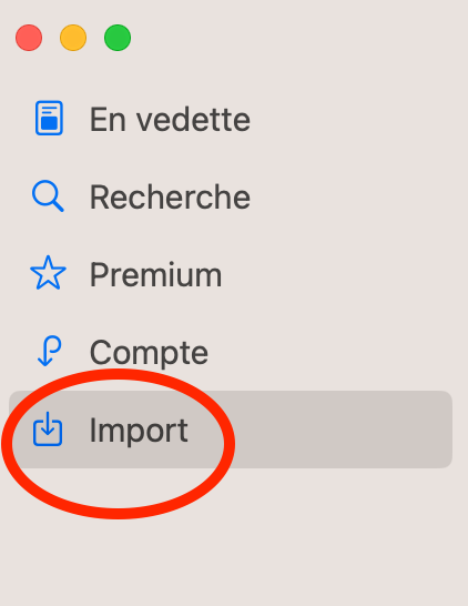 Vous pouvez ensuite sélectionner Import dans la fenêtre de gauche :