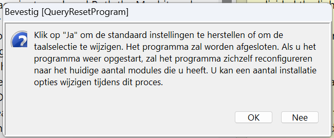 Het 1e wordt opgelost met de functie Reset Programma onder het menu Extra. Deze functie controleert welke modules er zijn, en koppelt die aan Online Bijbel.